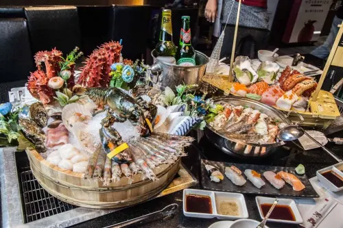 選擇帝王蟹吃到飽,肉品直接升級,除了原本的雪花牛、沙朗牛、梅花豬、土雞肉、小羔羊外,還有無骨牛小排和松阪豬一樣吃到飽。