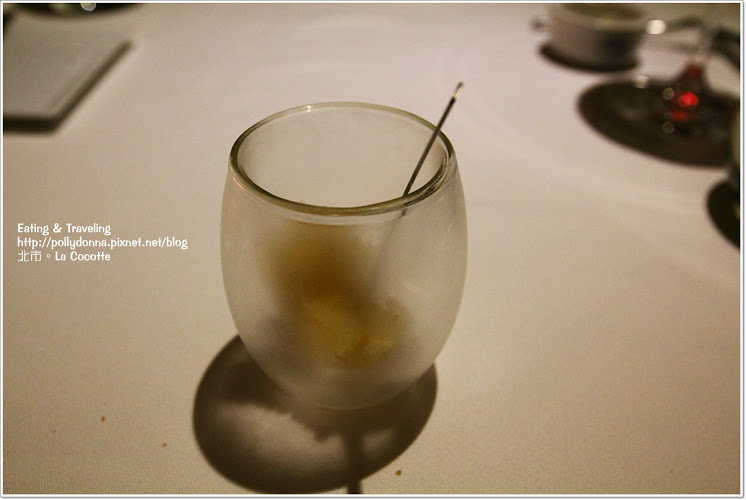 主餐前的伯爵紅茶冰沙,因為我不吃冰,所以就沒吃了,服務人員後來有來跟我確認是不是不吃冰,原本的甜點也是冰淇淋,因為我不吃冰就換成檸檬塔,非常貼心的舉動