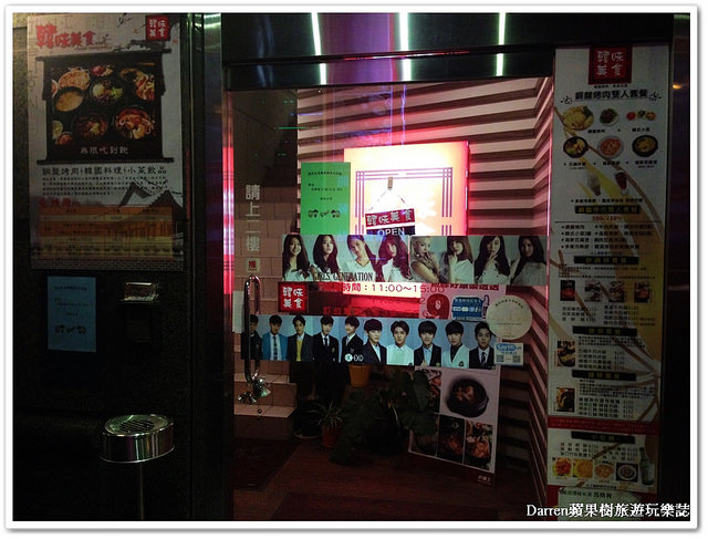 用餐空間在二樓,晚上來用餐室內燈光有點暗,牆面貼上許多韓國團體和景點的海報