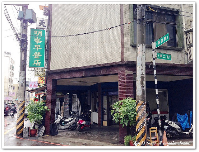 明峯早餐店的綠色招牌非常不明顯,外觀就和一般民宅沒什麼兩樣