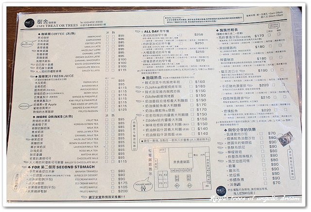 menu有早午餐、熱食、輕食和飲品等,價格大多在150~300之間,每人低消80元