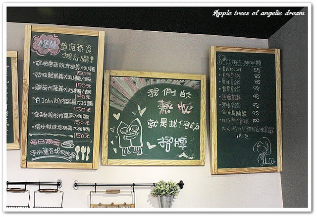 進門櫃台等於是開放式廚房佔掉大半空間,櫃台上方有手寫menu很可愛