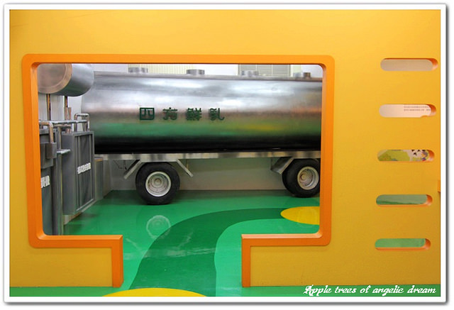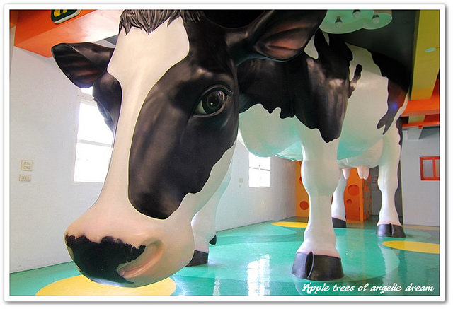 乳酪場館外還有三角型乳酪和牛奶裝置,館內有巨大乳牛可以模擬擠奶育教於樂