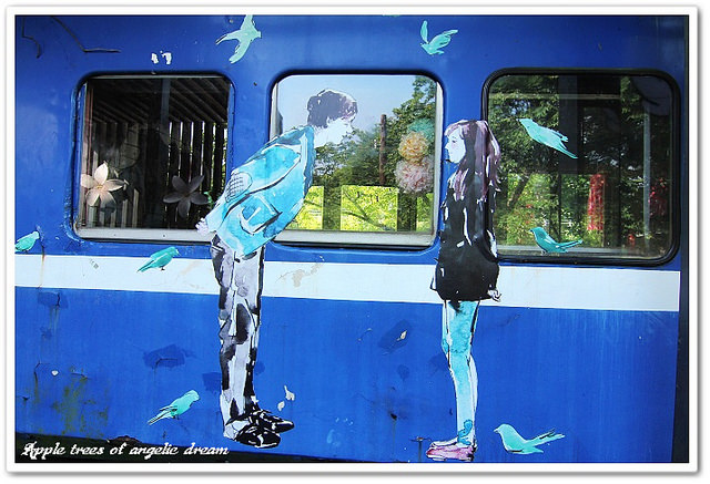 普通車廂上面彩繪上兩人從愛情到甜蜜的彩繪~好有畫面啊