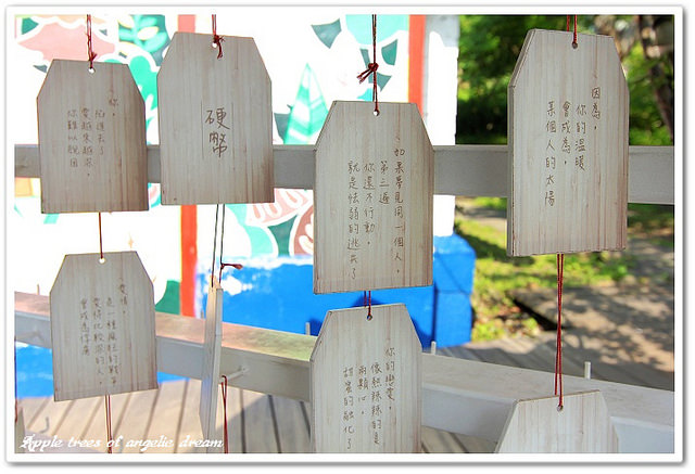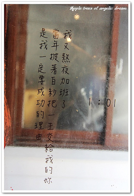仔細看木窗格的玻璃上還有文字,紀錄著愛情故事的點點滴滴
