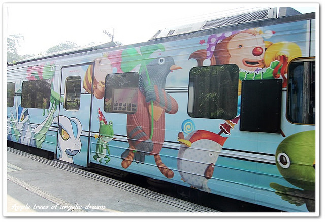 火車來了!!車廂上面有可愛彩繪可以欣賞