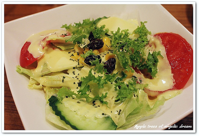 ▲生菜沙拉搭配自製沙拉醬,吃起來滋味略甜生菜清爽開胃