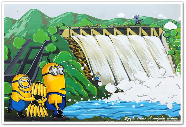 桃園大溪多了一處『小小兵彩繪牆』,小小兵cosplay及融入大溪景點彩繪