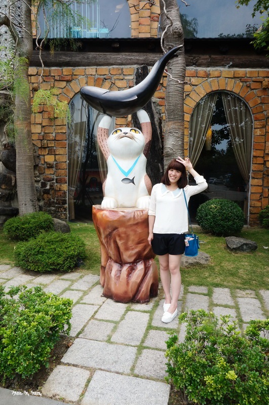 門口就有隻超可愛的貓咪 正抓著虱目魚