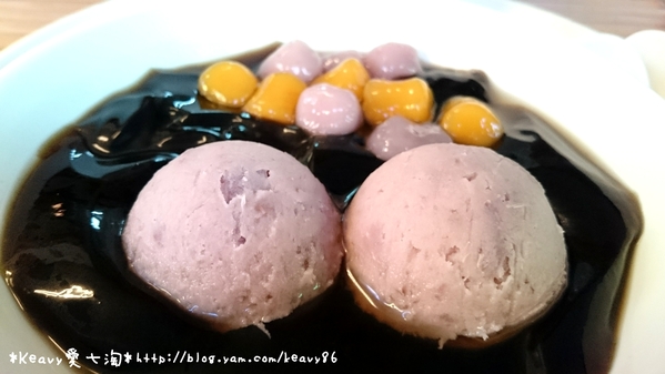 讓Keavy吃完後流連忘返的就是這一味啦~!此甜品除了有店家本身拿手的Q嫩滑口的古早味仙草,和點綴的Q彈芋圓外,重點是還有這兩球又綿密又實在到不行的芋泥,簡直在吃活生生的芋頭似的,真的好好吃呀~!