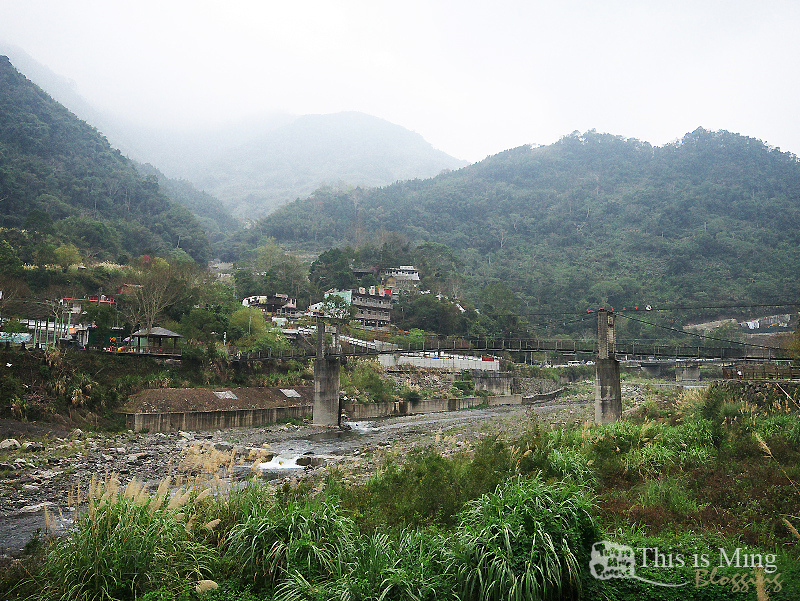 從院子前可俯瞰上坪溪,雖然荒煙漫草不甚美觀,水泥基柱的清泉吊橋也有點破壞景色,但山林裡的靜謐氣氛還不差。儘管因為些微人為開發與假日遊客,比起真正跑去深山裡山林環伺弱了些。