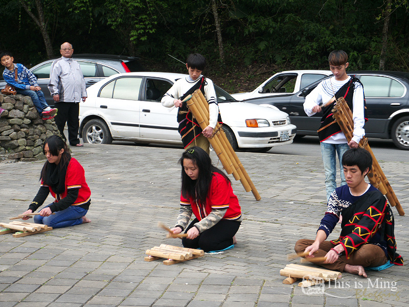 廣場上還有當地的原住民小朋友在表演,木片、竹管,就是最原始的樂器。