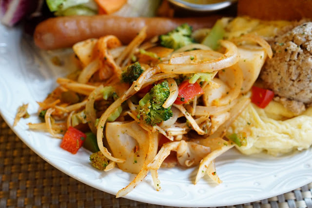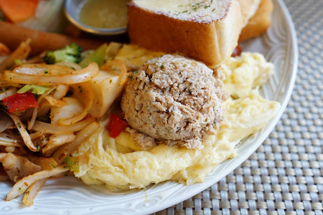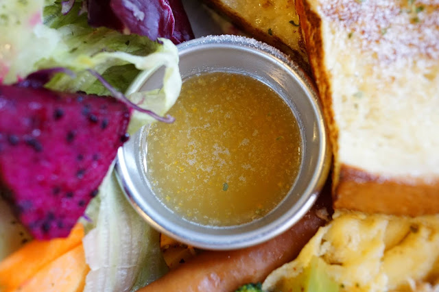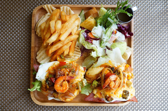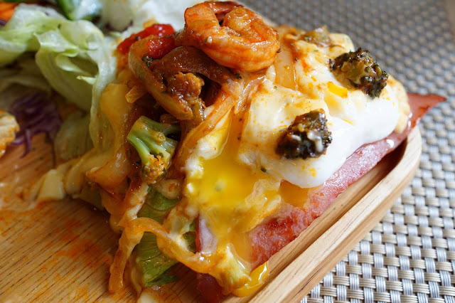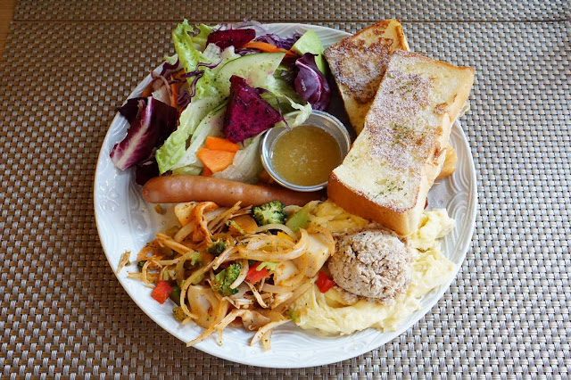 (水果生菜沙拉、培根、德國香腸、炒蛋、鮪魚、綜合菇、法式厚片吐司)