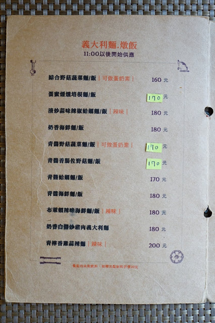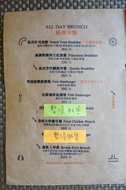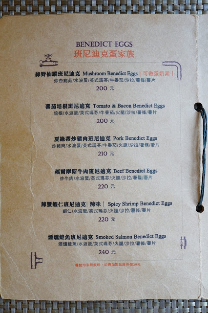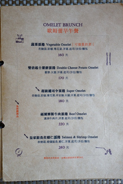 ▲主餐部份有「經典早餐、歐姆蕾早午餐、班尼迪克蛋家族、義大利麵(燉飯)」四大項,每一項都有5種以上的口味可以選擇,價位於160元至240元之間,不算貴,連續來吃幾天也不會膩。