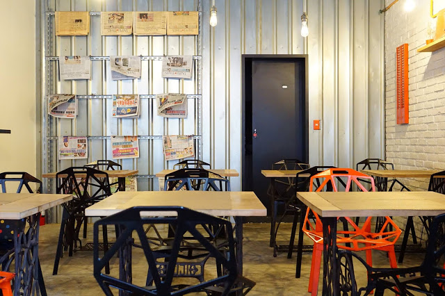 ▲裝潢的部份是金屬和燈泡元素的工業風格,架上有提供中文和英文的報紙。
