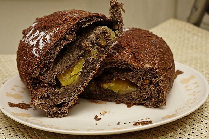 麵包鬆軟微甜, 麵包體Q度不錯, 裡面還有栗子餡, 很好吃的麵包