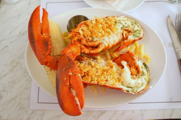好大一份呀!!!有:一整隻龍蝦、一隻玉米、一份薯條!!