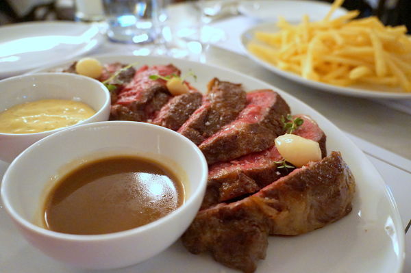 點牛排醬汁可以3選1,有:經典貝亞恩、辣根、綠胡椒可以選擇