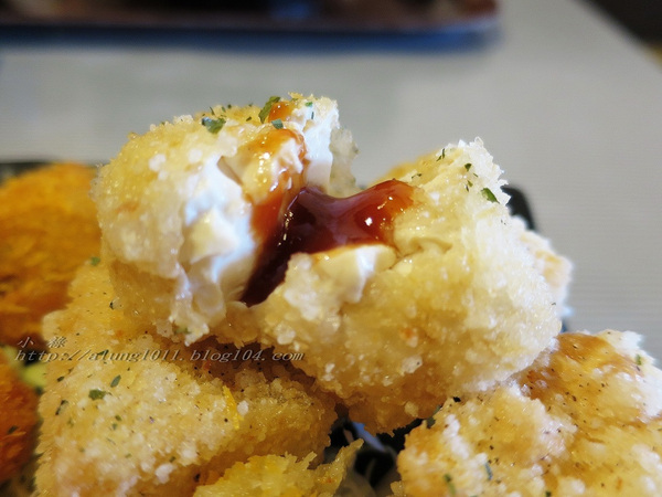小小塊的雞柳條~外皮香酥,裏層的雞肉Q彈像雞腿肉反而不像雞胸肉… ya!