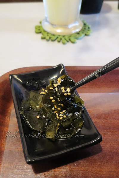 涼拌海帶芽可拌入主餐食用也可單吃。風味不錯微甜、份量少大約一兩口。