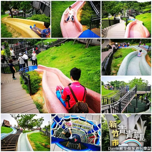 滑草僅限用紙箱,需自備紙箱來玩喔,你看~這些熟門熟路的,早就有備而來,拿著自己帶的紙箱在滑草了,坡度不會太傾斜,有時滑草會小小滑不動卡卡的,哈哈!!但還是挺有趣的