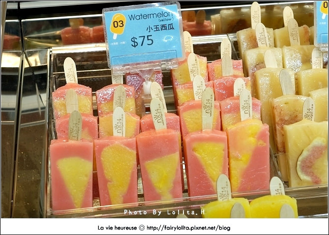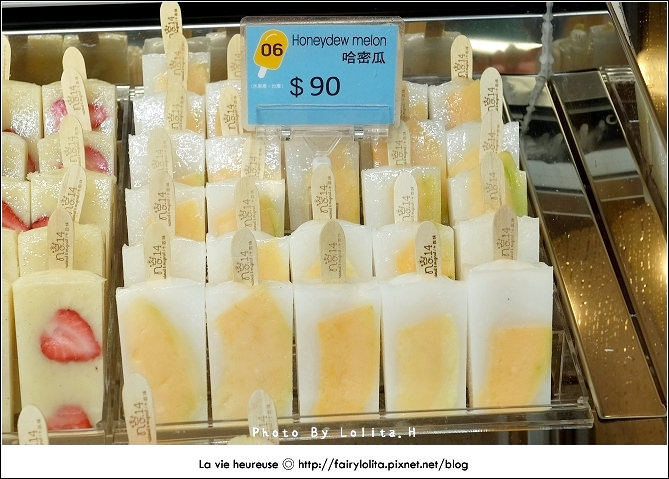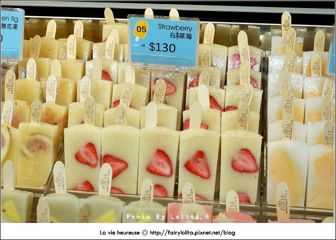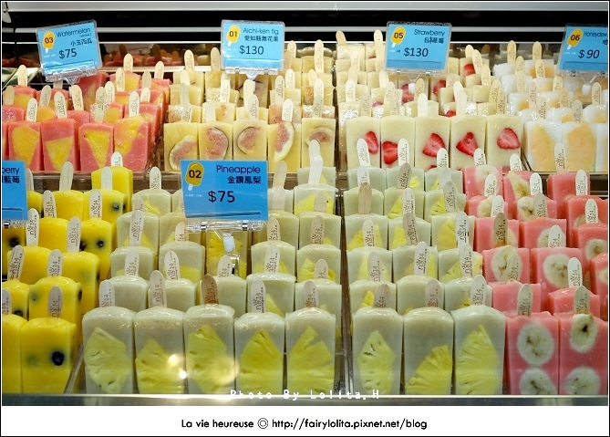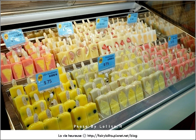 昨天下午在sogo閒晃時,想說來去B2超市逛逛,沒想到竟然讓我發現這個剛設臨時櫃的冰棒,哇塞!一看不得了~立馬就被吸引過去,還記得前幾天我才剛跟老姐邊帶著羨慕、邊又小不爽的心情說好想吃嘉義的「冰的大本營」,這下就發現類似的姐妹品,而且還是在台北,喔耶喔耶!!開心到要灑花!XD