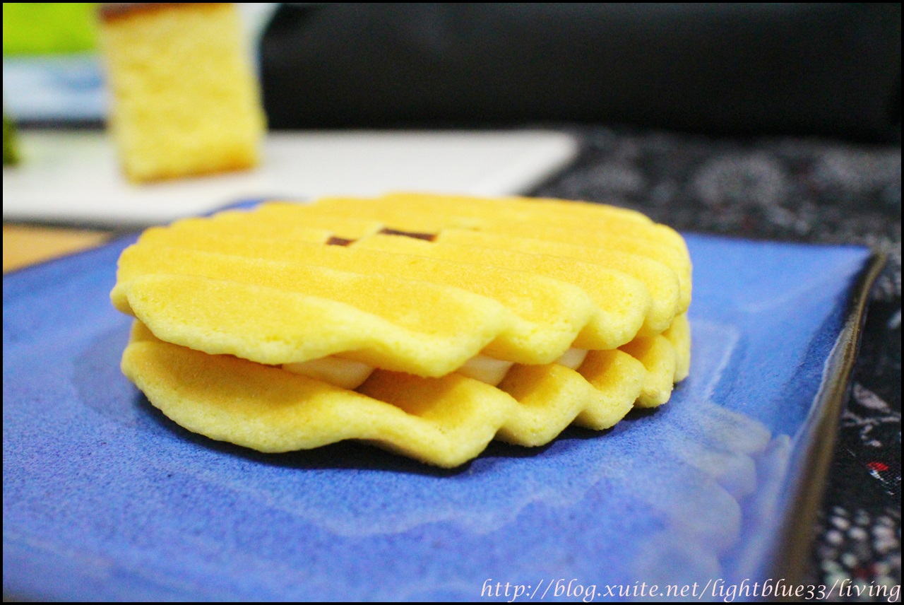 餅乾是波浪狀的夾心,兩種口味有不同的包裝