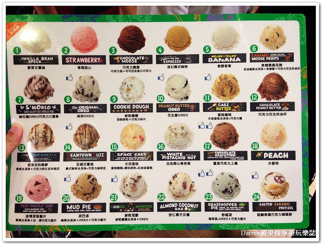 排隊邊看他們家的MENU,冰淇淋經典口味主要有24種,上面有讚的品項可以參考