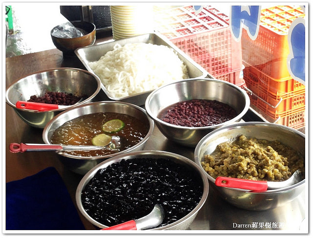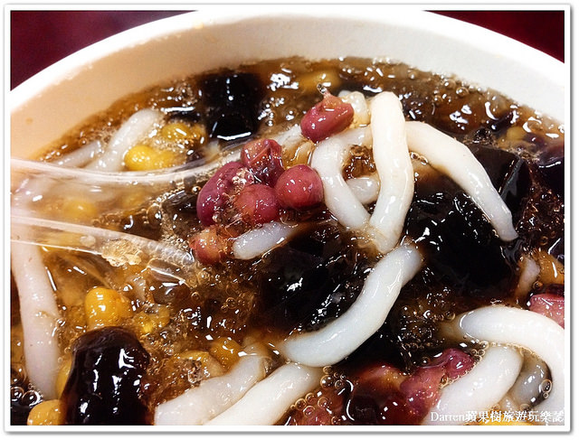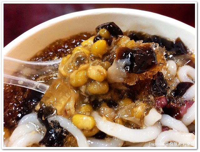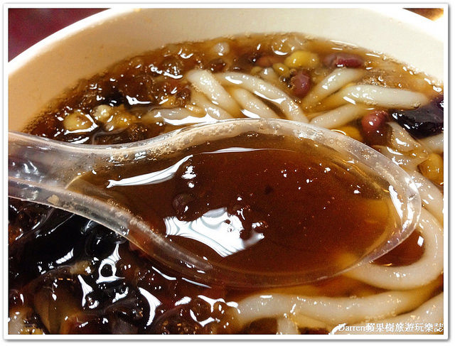 天氣很熱稍微攪拌把餡料往上撈,黑糖水混合銼冰喝起來冰糖水超級消暑而且料也很多