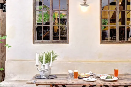 ▲茶館為正方型隔局 兩側窗戶一邊面向戶外露台"綠意舞台"