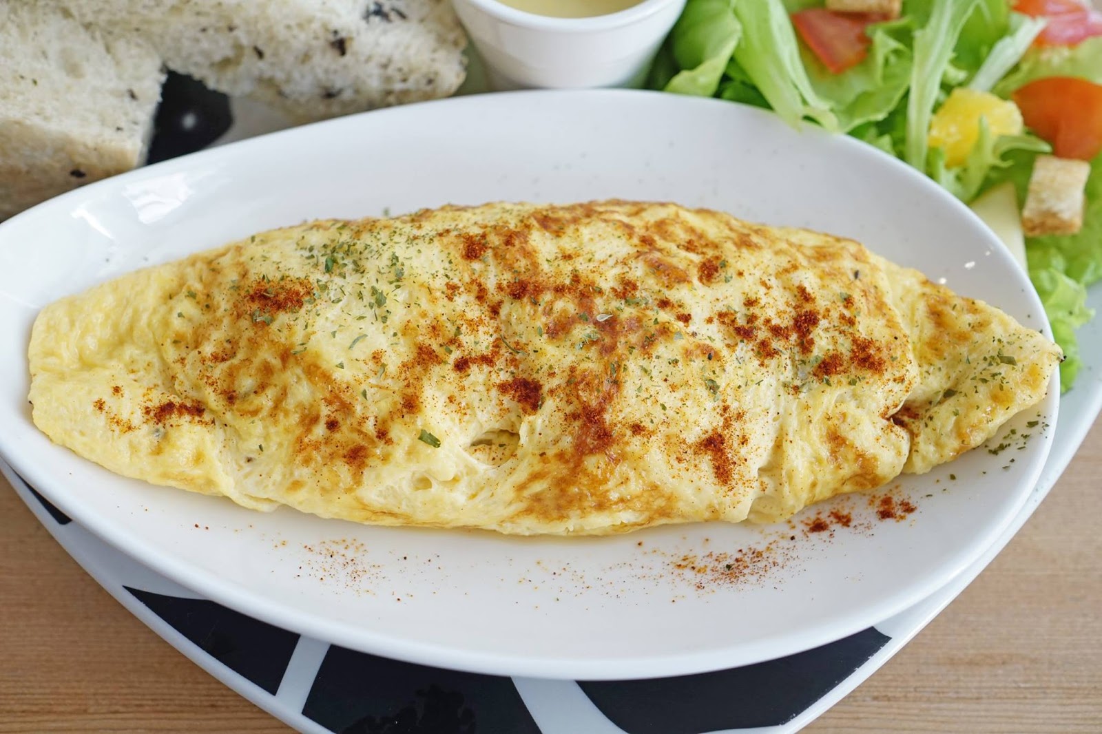 歐姆蛋捲、蔬果沙拉、佛卡夏。