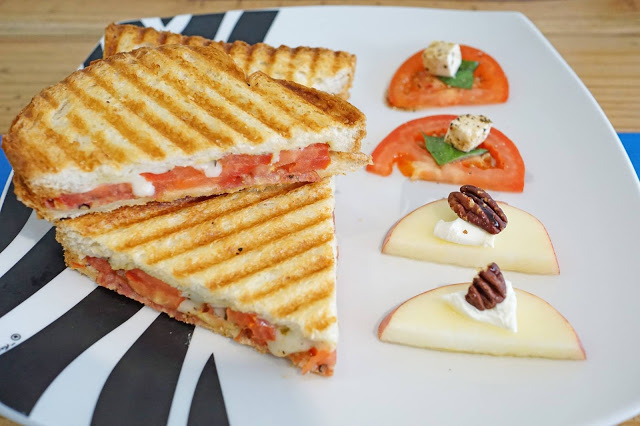 帕尼尼分成三塊,加上兩樣精緻副食。