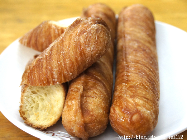它一點都不像夜市中賣的牛奶棒…遠遠地就聞到濃濃地焦糖和巧克力的香氣,也不像外面賣的,外表「啵」亮。但是,吃起來,不油膩,像是有安佳奶油口感的古早味甜甜圈。最有趣的是,仔細品,你會發現口中有些微酸,千萬別誤會,這可不是東西壞了,這牛奶棒,老闆是用老麵做的!