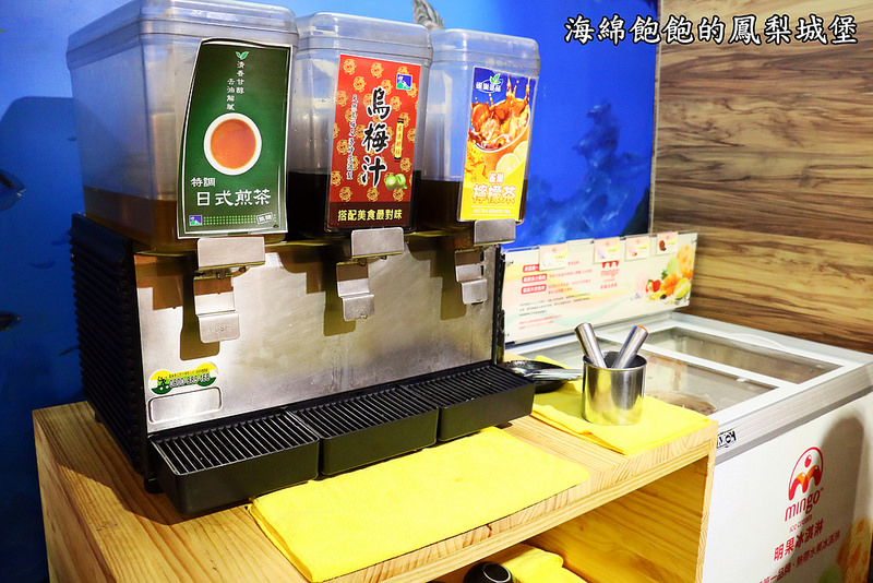 飲料有日式煎茶、烏梅汁、檸檬茶