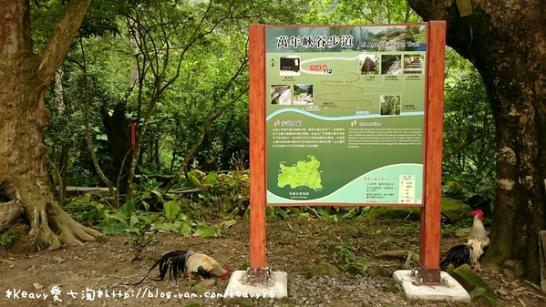 在前往萬年峽谷的路程中,到處可見附近店家飼養的放山雞,各各都好有活力在山林裡漫步著。
