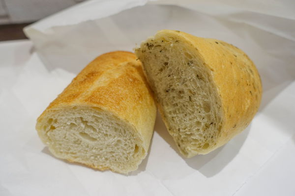 口感扎實的法國麵包跟同樣有嚼勁又帶點彈性的香料巧巴達。