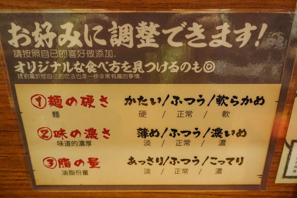 麵條軟硬跟湯頭風味可調,不過部分商品是固定不可調,例如我當天點的拉麵。