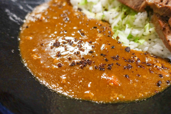 絕對跟市面上大多數的咖哩有別;微苦的蒜酥隨意灑於其上增加味蕾感受的層次感。