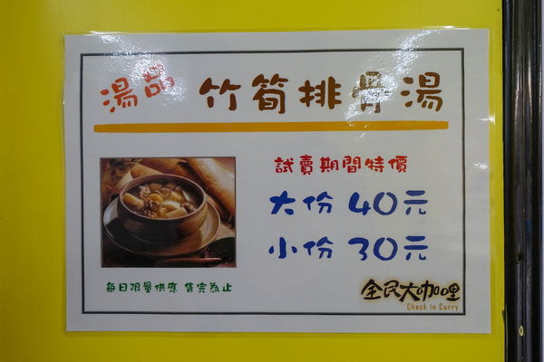 品項就四飯一湯,之所以吸引我的點是店家特地把咖哩飯細分為日式跟印度兩種,這在平價小吃裡頭