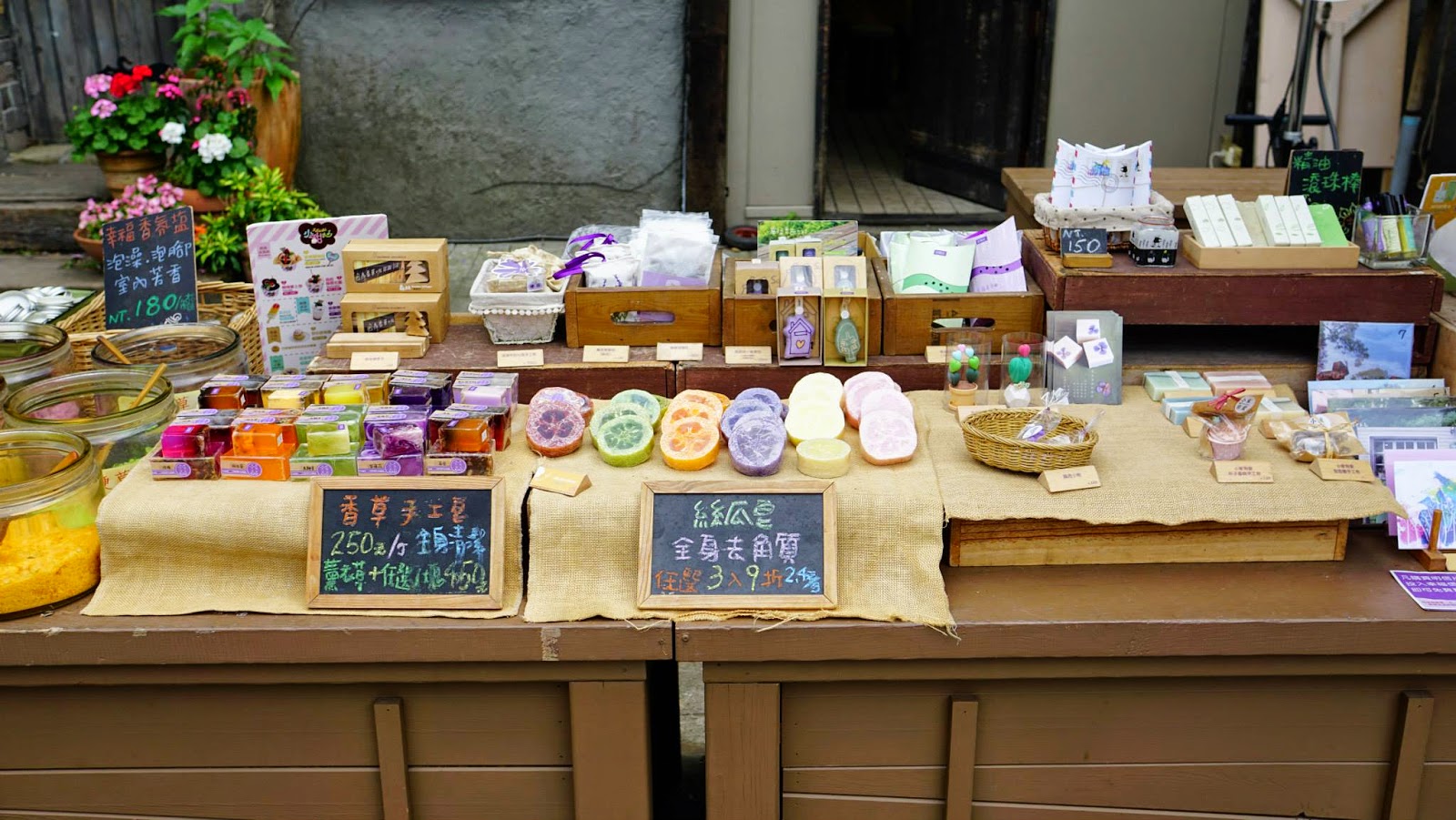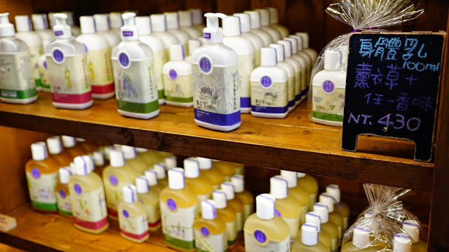 ▲一靠近門口就聞到花草的清新香味、裡面販售以花為主的香皂、香包、乳液、護手霜、花茶、馬克杯、小盆栽…等商品。