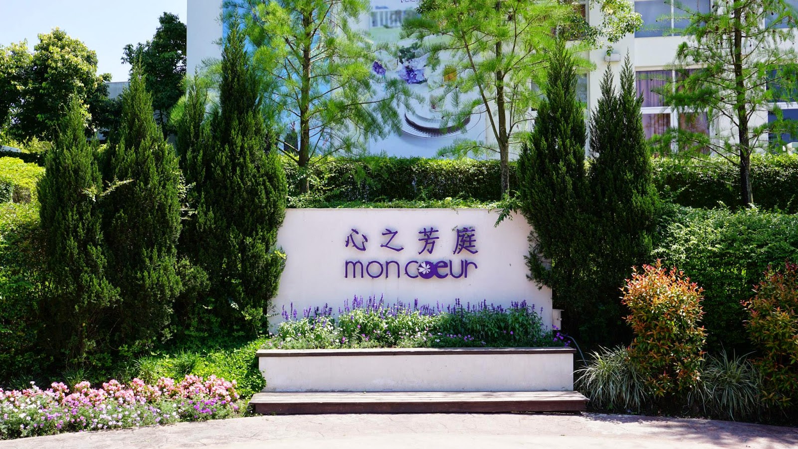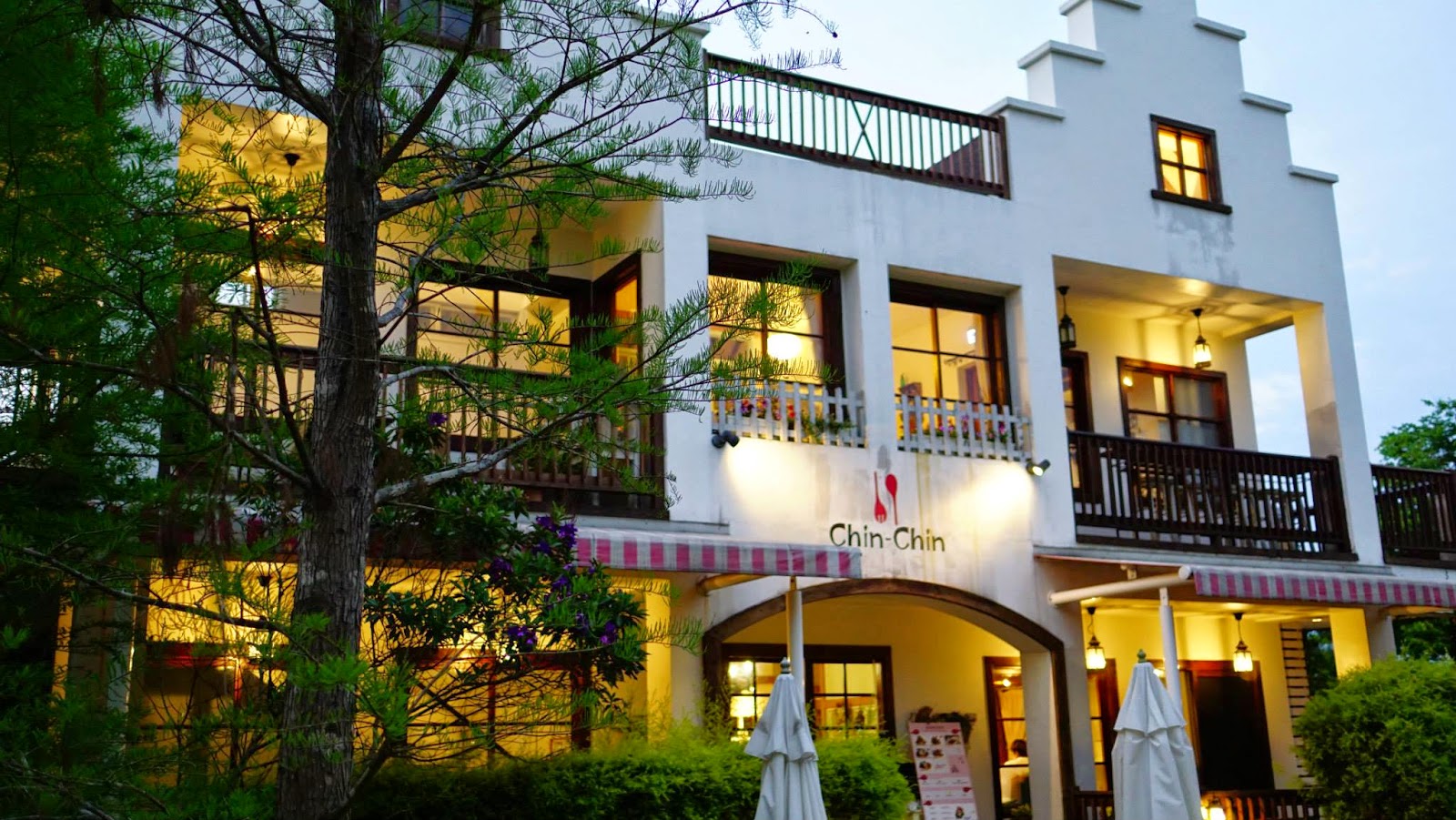 ▲門口前面的招牌,有漂亮的樹木和花草,拍照留念的熱點。