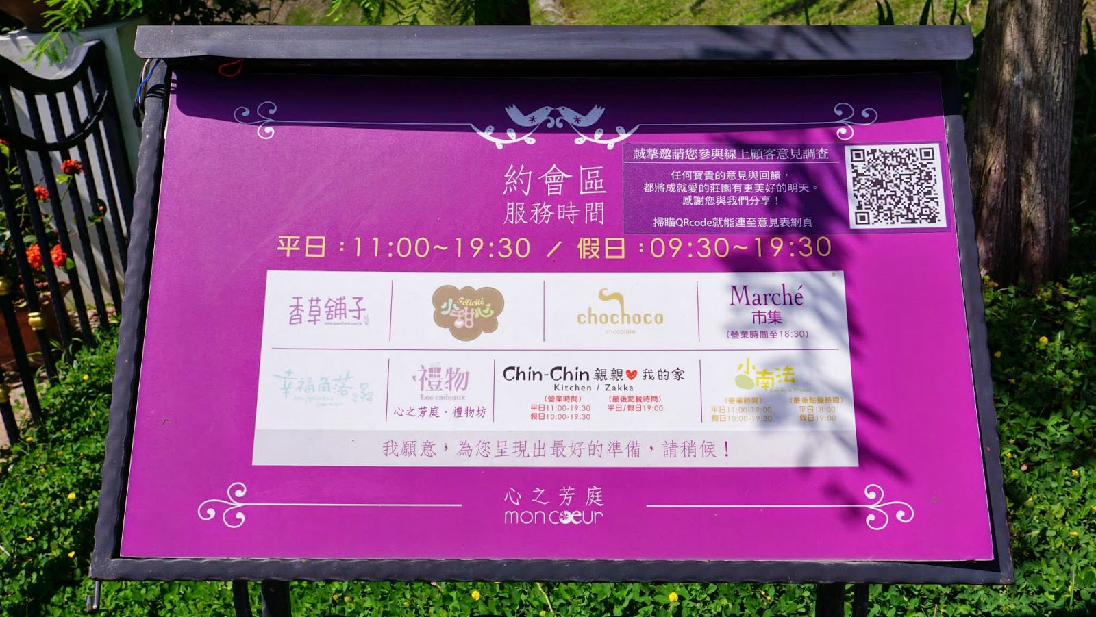 ▲置於入口處的立牌,參觀之前,貼心告知遊客營業時間。