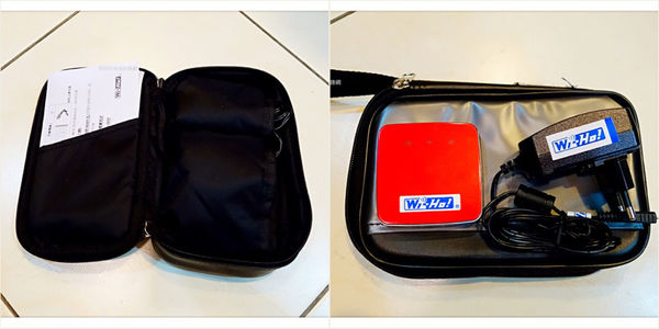 包包裡面有說明書和紅色的「Wi-Ho!」wifi方塊機、充電插座