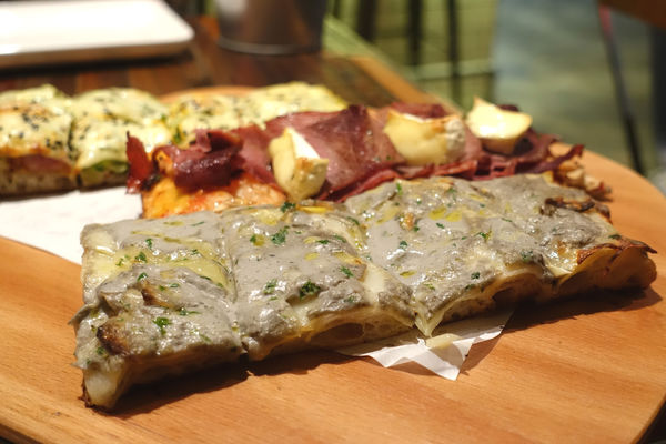 Square Pizza的餅皮是走薄片路線唷,脆度適中,但麵粉味極香!!!!