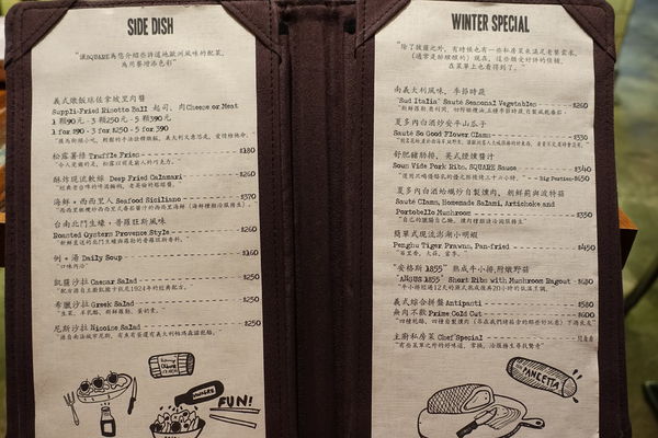 除了現場選擇的方形pizza之外,店家還是有固定的餐點菜單噢,