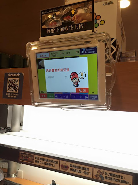 餐點送到之前,螢幕也會通知歐!!餐點會出現在迴轉台上面的那一層。