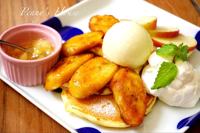 ▼焦糖香蕉冰淇淋鬆餅