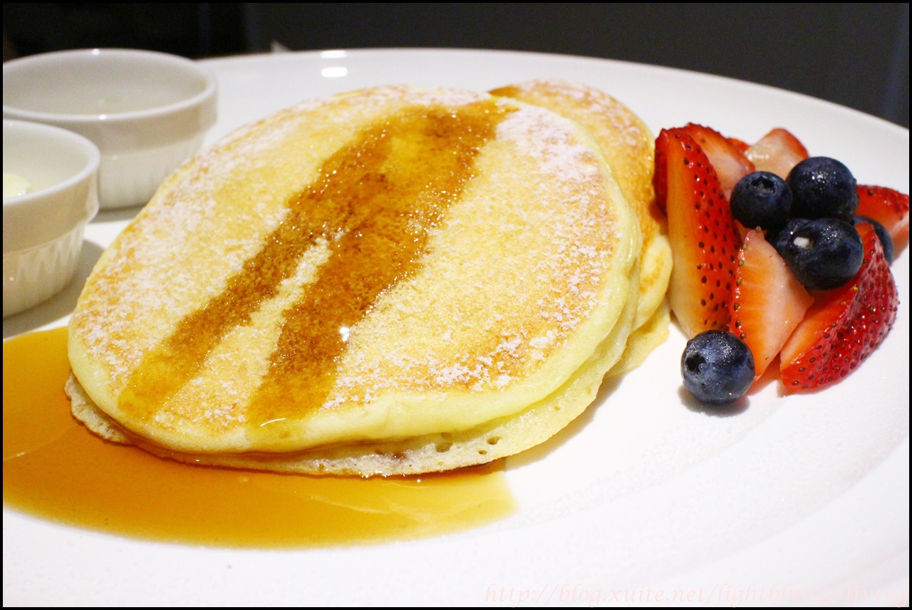 餐點雖然都是現點現做,但也不會感覺等候太久,我們還沒吃完蛋捲,果園檸檬起司煎餅便上桌了,有四大片鬆餅,非常夠份量