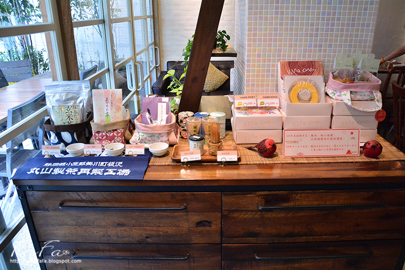 進門看到了熟悉的商品展示櫃,店家從日本帶回的茶葉包、抹茶粉及茶筅 。