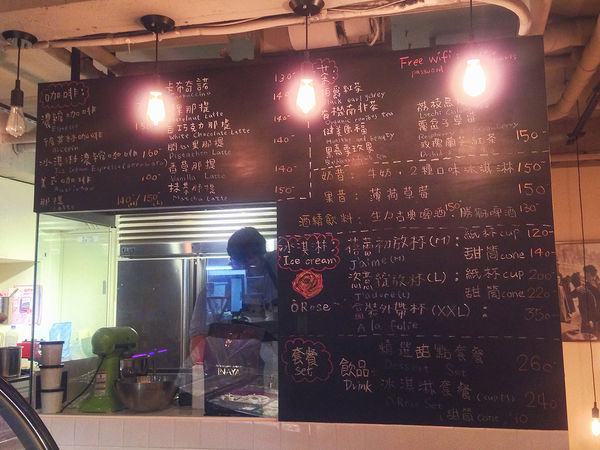 店家外頭放著可愛的小黑板寫著甜點和冰淇淋套餐組合,後方還有戶外區座位